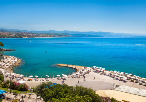 Міський пляж Slatina з шезлонгами і парасольками (за додаткову плату) недалеко від готелю (бетонна плита).