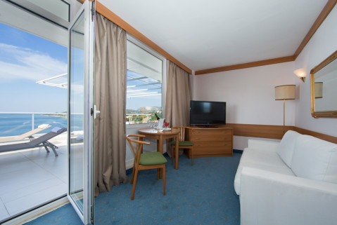 4 номери Suite (41 кв.м, балкон, вид на море, спальня + вітальня з диваном, окремий вхід, тераса з шезлонгами, макс. 4 дор.)
