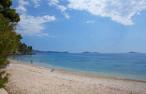 Гальковий пляж перед готелем, лежаками і парасольки - за додаткову плату.