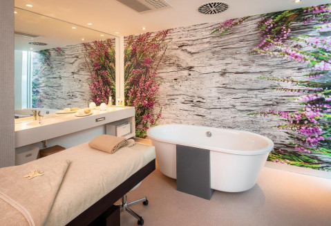 Спа: расслабляющий 18-метровый бассейн в форме лагуны с шезлонгами для подводного плавания, гидромассаж, талассотерапия, процедурные кабинеты, зона для отдыха, Спа-бар, тепидариум, парк саун (соляная, хаммам, аромасауна, финская), 2 Спа-сьюта для особого комфорта пар).