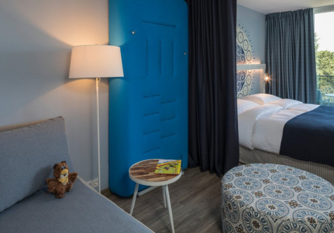 Family Standard XL Room Balcony (40-44 кв.м., деякі з балконом (на вимогу), розсувні двері між батьківської зоною з двоспальним ліжком і дитячою зоною з двоярусною ліжком, вітальня з диваном, макс. 2 дор. + 2 дит. )