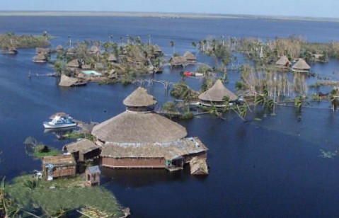 Місцевий готель, що нагадує плавучий місто, - це комплекс з пальмового листя хатин, кожна з яких оснащена всім необхідним (в тому числі кондиціонером) і має два виходи: один на сушу, а інший представляє собою спуск на воду - так зручно сідати в човен.