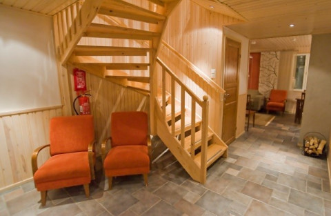 Опис: висококласні апартаменти. На першому поверсі 3 спальні (по 2 ліжка в кожній), вітальня, поєднана з кухнею, камін (дрова), туалет, балкон. На другому поверсі 3 спальні (по 2 ліжка в кожній), вітальня, сауна, ванна кімната, туалет.