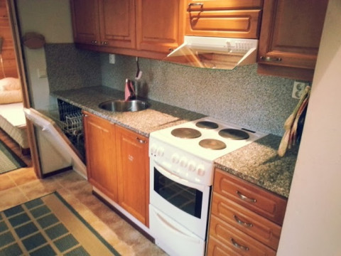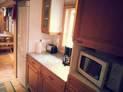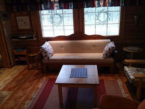Загальною площею 100 м2, в будинку три спальні, вітальня (розсувний диван), невелика окрема кухня. Так само у будинку своя власна дерев'яна грільніца (з обладнанням для гриля-копчення). Туалет, душова і своя сауна. Камін і тераса.
