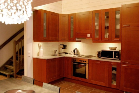 -На другому поверсі (27м2): простора вітальня з каміном і диваном-ліжком на 2 людини, одна спальня, туалет, ванна кімната і сауна