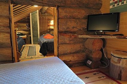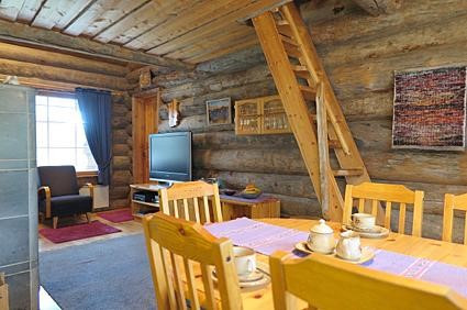 Вітальня з каміном, кухня, спальня (двоспальне ліжко), сауна (душова кімната з туалетом), і верхнійетаж.