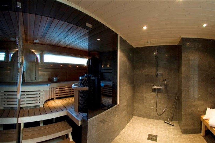 Оснащення: великий камін / дрова для каміна, 2 ТВ / кабельні канали (+ російськомовні канали), радіо / CD-плеєр, DVD, електрична плита + духовка, посудомийна машина, мікрохвильова піч, кавоварка, електричний чайник, тостер, холодильник, морозильна камера, пральна машина, автоматичний сушильну шафу для одягу, прасувальні пристосування, розетка для підігріву двигуна автомобіля.