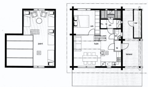В котеджі повністю обладнана кухня, вітальня, туалет, душ, сауна, камін, спальня на першому поверсі з 2ма ліжками, на відкритому лофт 4е окремих ліжка. Так само в котеджі ТВ, CD / DVD програвач, бездротовий Інтернет, місце для паркування.