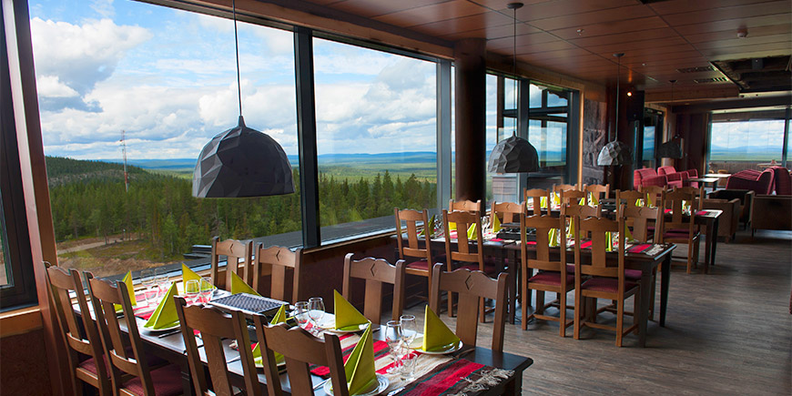 ресторан (шведський стіл і a la carte), лобі бар, ресторан і бар на 7-му поверсі з панорамним видом, ресторан Spiella в будівлі Levi Summit - дуже популярне місце відпочинку для тих, хто катається протягом дня.