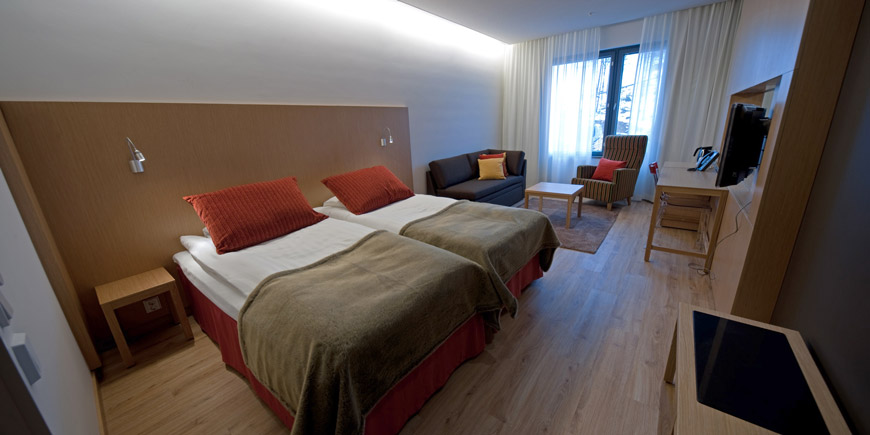 туалет / душ, ТВ, радіо, мінібар, сейф, телефон, інтернет, чайник / кавоварка, диван, що розкладається на 2 чол (160 см). У номерах суперіор також є балкон (крім номерів на 2-му поверсі). Сушильні шафи є у всіх номерах, крім стандартних двомісних.