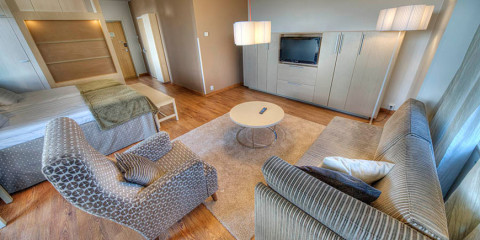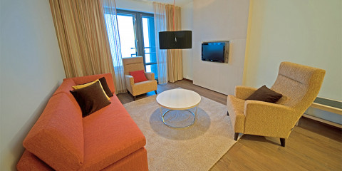 5 номерів Junior Suite (вид на внутрішній двір, балкон, сауна або ванна, макс.2 + 2 чол., 37-46,5 кв.м)