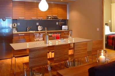 • Устаткування: широкий екран ТВ, радіо, CD-плеєр, DVD, кухня (електрична плита + духовка, посудомийна машина, мікрохвильова піч, кавоварка, електричний чайник, тостер, холодильник, морозильник), пральна машина, автоматичний сушильну шафу для одягу, прасувальні приналежності, безпровідний інтернет