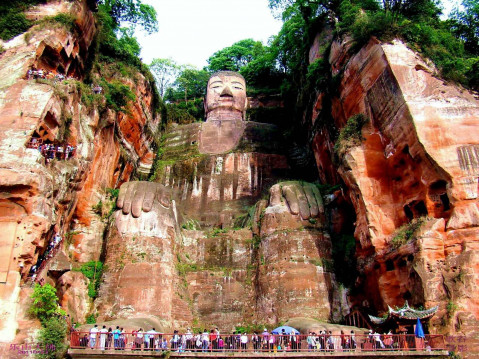 У провінції Китаю Сичуань, під містом Лешань, прямо в скелі вирізьблена величезна скульптура Будди висотою 71 метр — одна з найдавніших у світі скульптур. Пам'ятка Китаю у вигляді гігантського Будди розташований у місці злиття трьох річок, зустрічні потоки яких утворюють небезпечні коловороти. В цих потоках загинуло чимало місцевих жителів і рибалок, тому, згідно з переказами, чернець Хай Тун вирішив приборкати стихію, вирубавши в скелі образ божества. В 713 році він приступив до роботи, але за роки свого життя він встиг викресати гігантська статуя Будди тільки до колін, а пізніше продовжили роботу послідовники ченця, і приблизно через століття статуя була готова.