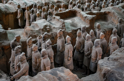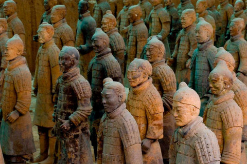 Недалеко від міста Сіань в провінції Шеньсі, розташовується величезна за розмахом пам'ятка Китаю — багатотисячний військовий гарнізон, але не військових, а глиняних статуй зростанням 1,9 — 1,95 метра. Це чудо світу відомо як Теракотова армія, а його історія налічує понад 2 тисяч років. Всього підземні поховання включають мінімум 8099 статуй китайських воїнів і їх коней, виготовлених з теракотової глини. Незвичайна глиняна армія була похована з першим імператором Цинь-Шинь Шихуанді, що об'єднав царства Китаю в єдину державу.