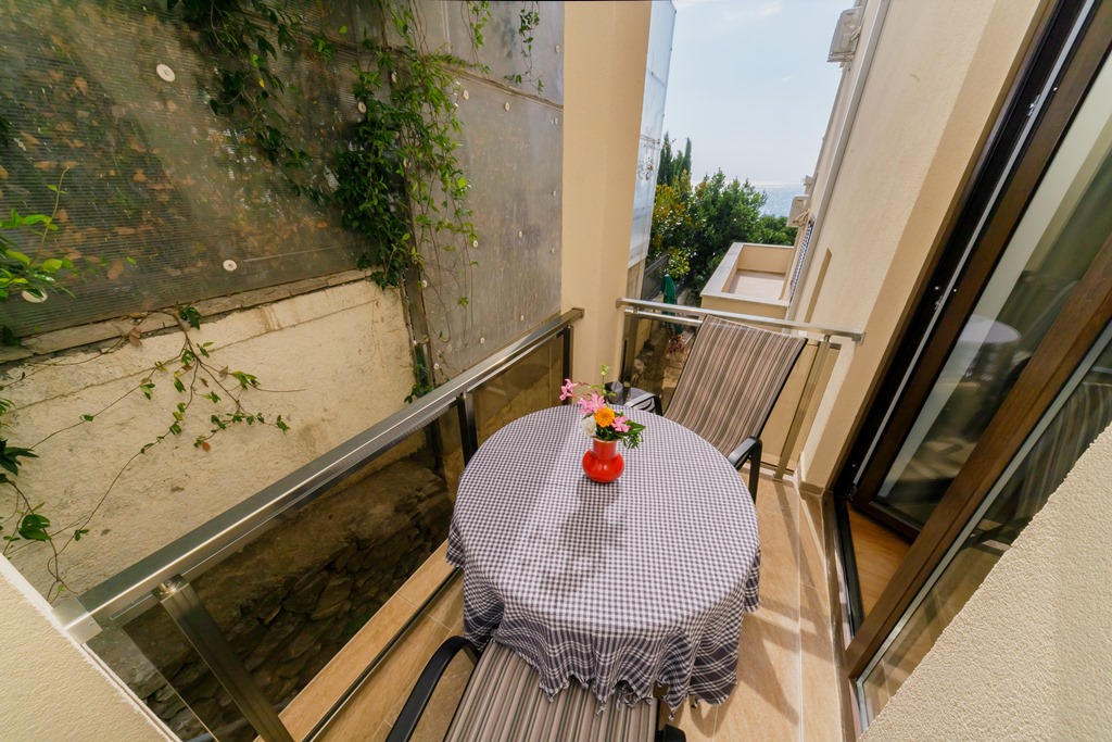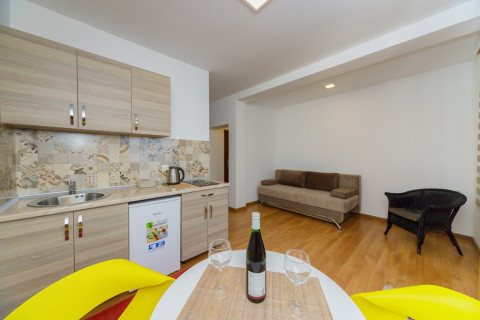 В АРР 04 sv: у вітальні розкладний диван, повністю обладнана кухня, в спальні французьке ліжко, супутникове ТБ, Wi Fi інтернет, санвузол з душовою кабіною, балкон з видом на море. № 6,10. Максимальне розміщення: 4 чол.
