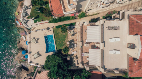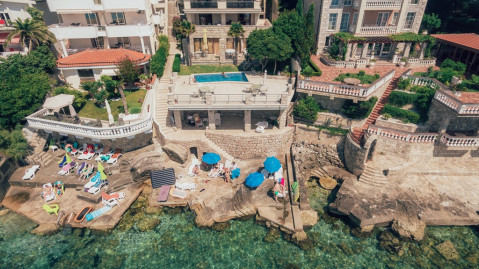 На самому березі моря, власний пляж вілли, обладнаний лежаками і парасольками, також до послуг гостей паркінг.