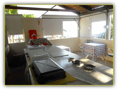 B APP: Кондиціонер, кабельне телебачення, холодильник, обладнана кухня, поєднана з кімнатою (роздільні ліжка), ванна кімната, простора тераса з тентом, вид на затоку. Апартаменти дворівневі, на другому поверсі - спальня - французьке та односпальне ліжка. Розміщення 4-5 чоловік.