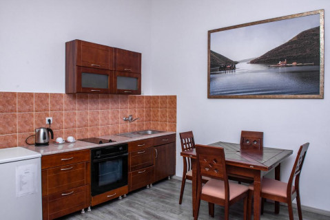 У 20 метрах власний пляж бетонна платформа, обладнаний шезлонгами і парасольками.