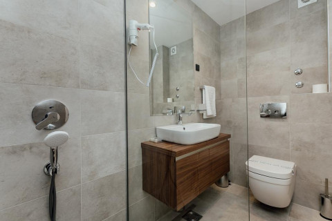 В Junior APP: зонований номер, у вітальні розкладається софа, в спальні французьке або окремі ліжка, кондиціонер, супутникове ТБ, Wi Fi інтернет, міні-бар, сейф, чайник, санвузол з душовою кабіною, фен, туалетні приналежності. Без балкона, вид на подвір'я. Максимальне розміщення: 4 чол.