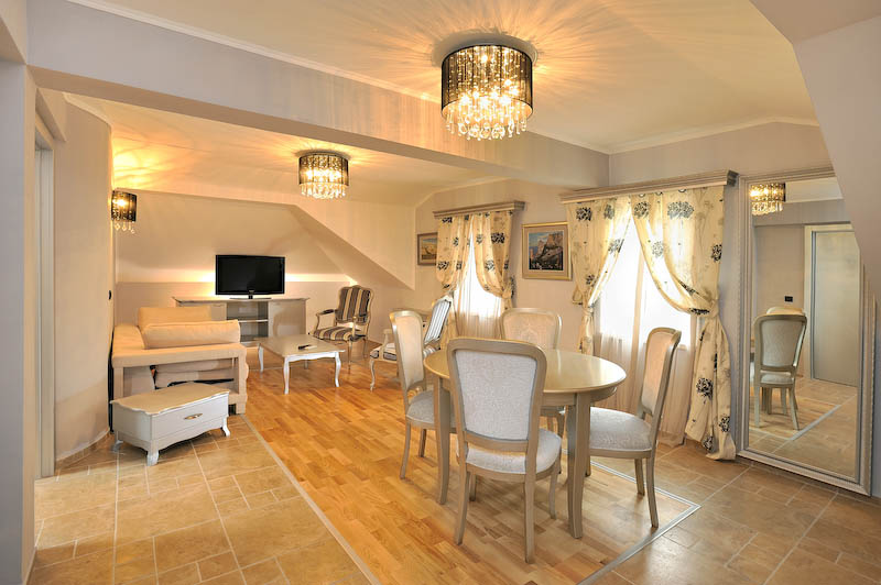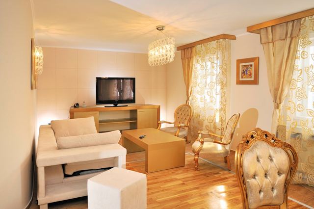 В SUITE EXECUTIVE: Спальня з французьким ліжком (King Size bed), вітальня з розкладним диваном, кондиціонер, сейф (безкоштовний), міні-бар (за додаткову плату), кабельне телебачення, телефон, доступ до інтернету, душ / ванна джакузі, фен, халати і тапочки, косметика . Максимальне розміщення - 2+1.