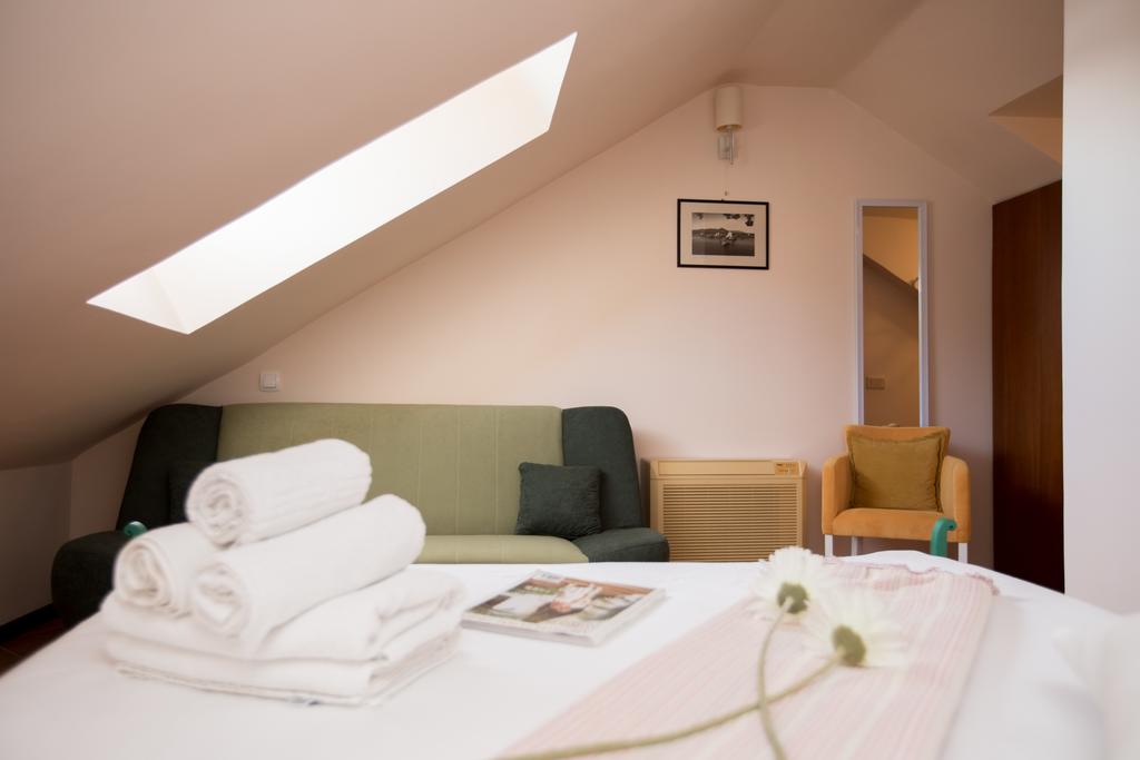 В Attic: в наявності SGL, TWIN і TRPLE номера, розташовані на мансардному поверсі будівлі, французьке ліжко в TRPL, кондиціонер, Wi Fi інтернет, немає телевізора, санвузол з душовою кабіною, вікна з видом на море і на небо. Площа: 18-24 м2.