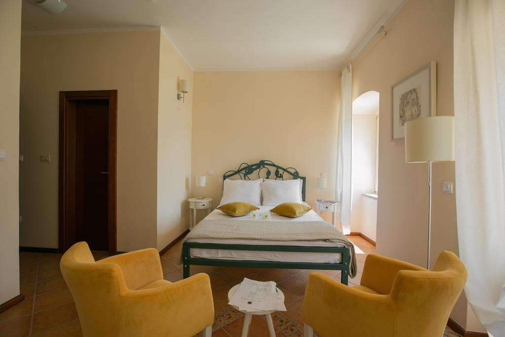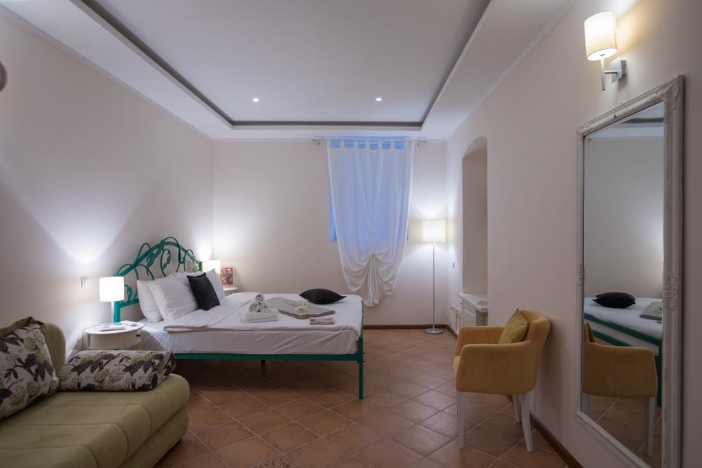 В Suite: французьке ліжко, кондиціонер, Wi Fi інтернет, немає телевізора, санвузол з душовою кабіною, вікна з видом на море. Максимальне розміщення: 2 чол. Площа: 35 м2.