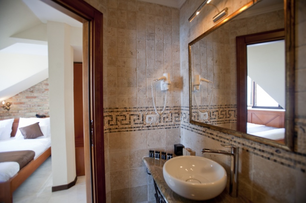 В Senior Suite terrace: цей тип номера складається з вітальні з великим диваном-ліжком та спальні з французьким ліжком. Площа номера складає 40 м². Сюьіт обладнаний телевізором з плоским екраном, міні-баром і сейфом, кондиціонер, телефон. Санвузол з душовою кабіною, фен, халат і тапочки. Вид на море або на гори. Вільний WI-FI доступний у всіх номерах. Тераса. Є можливість огранізувати додаткове спальне місце у вітальні. Максимальне розміщення 4 людини.
