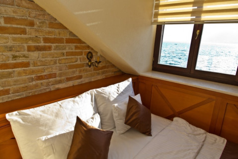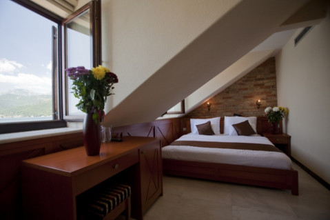 В DBL / with balcony: в номері французьке ліжко. Площа номера складає 18 м². Кожен номер обладнаний телевізором з плоским екраном, міні-баром і сейфом, кондиціонер, телефон. Санвузол з душовою кабіною, фен, халат і тапочки. Вид на море або на гори. Вільний WI-FI доступний у всіх номерах. Тераса. Максимальне розміщення 2 людини.