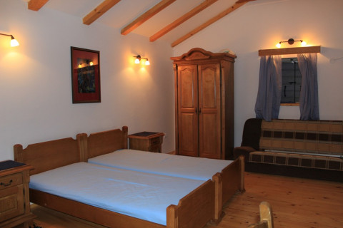 В АРР: Інтер'єр в старовинному стилі вдало доповнений різними предметами антикваріату. Апартамент складається з двох поверхів. На першому поверсі - простора вітальня з розкладним диваном, повністю укомплектована кухня, їдальня зона, ванна кімната з душовою кабіною. На другому - 2 окремі спальні з французьким та роздільними ліжками. Кондиціонер, кабельне телебачення, холодильник, електрообігрівач, чавунний камін, тераса перед входом. Максимальне розміщення - 6 осіб.