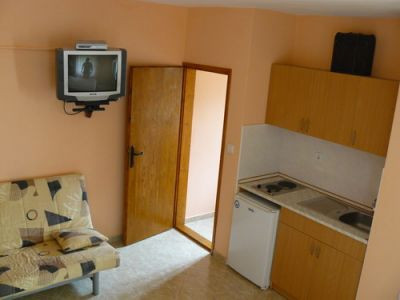 В студії: Французьке ліжко, міні-кухня, виділена вітальня зона з розкладним диваном, ванна кімната, тераса. Кондиціонер, кабельне телебачення, бездротовий інтернет, холодильник.