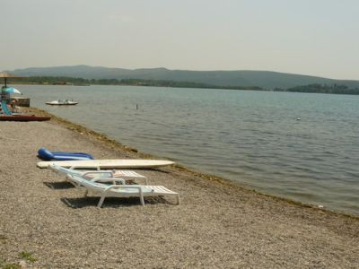 У 10 м від міського пляжу, галька і платформа, лежаки і парасольки - за доплату.