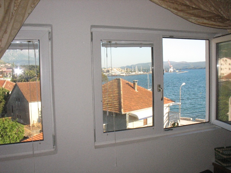 В апартаменті "Нена": На першому поверсі вітальня зона з обіднім Стод і кухнею, великим телевізором, кондиціонером, санвузлом, та панорамним видом на Порто Монтенегро та Тіватську затоку. На другому поверсі - спальня з французьким ліжком, санвузлом, без балкона, з видом на море.