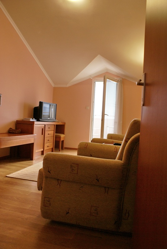 В готелі дев'ять зручних чотиримісних апартаментів площею 40 м2.