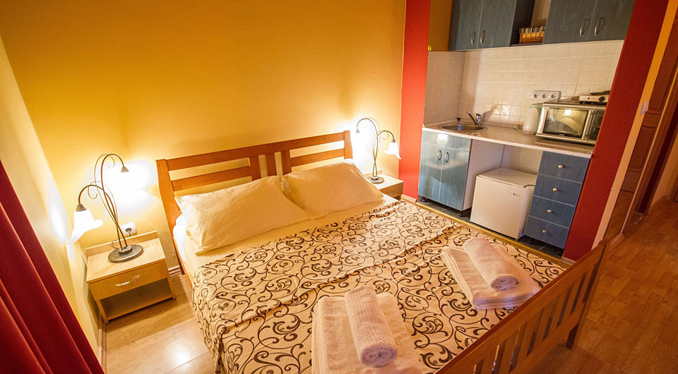 В STUD 02: однокімнатний номер, французьке або окремі ліжка, повністю обладнана кухня, кондиціонер, супутникове ТБ, Wi Fi інтернет, санвузол з душовою кабіною, фен, балкон. Максимальне розміщення: 2 чол.