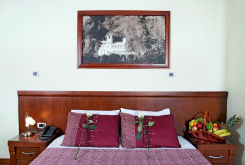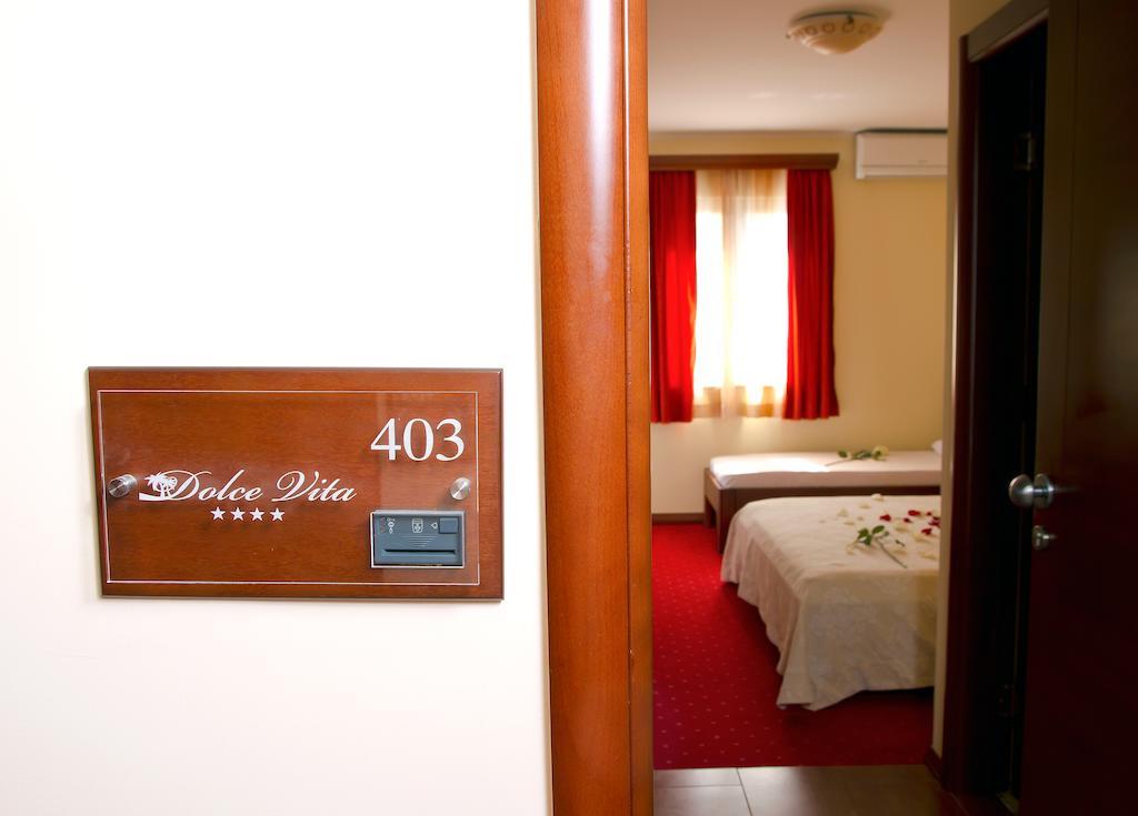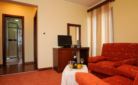 В SUITE LUX 5: Площа - 100м2, дві спальні: одна - з французьким, друга - з трьома роздільними ліжками, вітальня з розкладним диваном і кухнею, холодильник, весь необхідний посуд, сейф (безкоштовний), кабельне телебачення, 4 балкони з видом на море (одна з терас площею 15м2, має шикарним виглядом на Будванськая Рів'єра, дві ванні кімнати, фен.