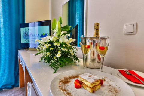 Харчування сніданки - шведський стіл. Більшість номерів з видом на море, в номерах кондиціонер, міні-бар, кабельне телебачення, фен. Сейф-на рецепції. У крокової доступності 3 продуктових магазини.