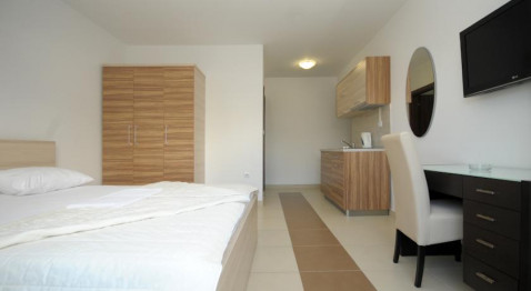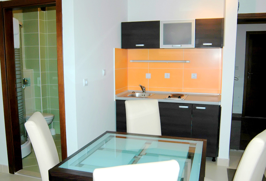 В APP 1 BR MANSARDA: Номери знаходяться на останньому поверсі, спальня з двоспальним ліжком і вітальня з розкладним кріслом і кухнею, кондиціонер, холодильник, кухня з електричною плитою і всім необхідним посудом, фен, балкон, душова кімната, кабельне телебачення. Максимальне розміщення 3 людини.