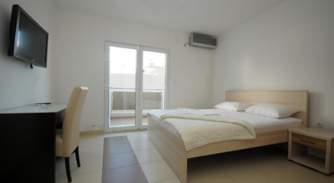 У центрі Будви, в 100 м від центрального ринку і супермаркету, в 100 м від пошти, в 250 м від Старого міста і пляжу Могрен. В 30м найближчий ресторан «L & M». У 23 км від аеропорту Тіват і в 60 км від аеропорту Подгоріца.