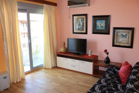 B APP NIKO 04: двокімнатний номер, в спальні - французьке ліжко, у вітальні - розкладний диван, кухня, холодильник, необхідний посуд, кондиціонер, плазмовий телевізор, у ванній кімнаті - душова кабіна, пральна машина, балкон без виду на море. Площа номера - 44 м2. Максимальне розміщення - 4 дорослих.