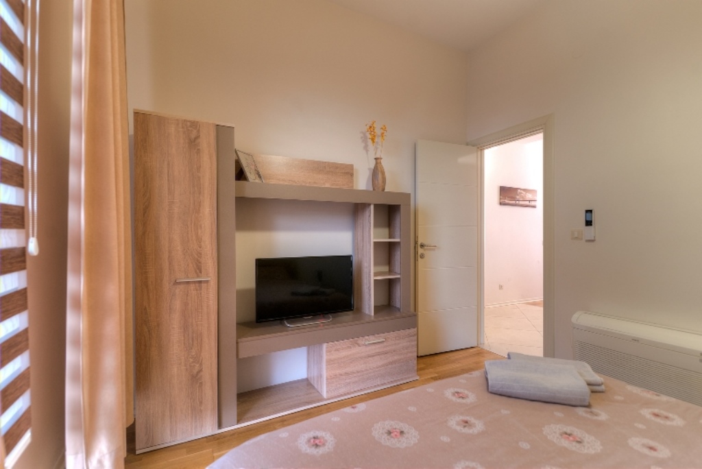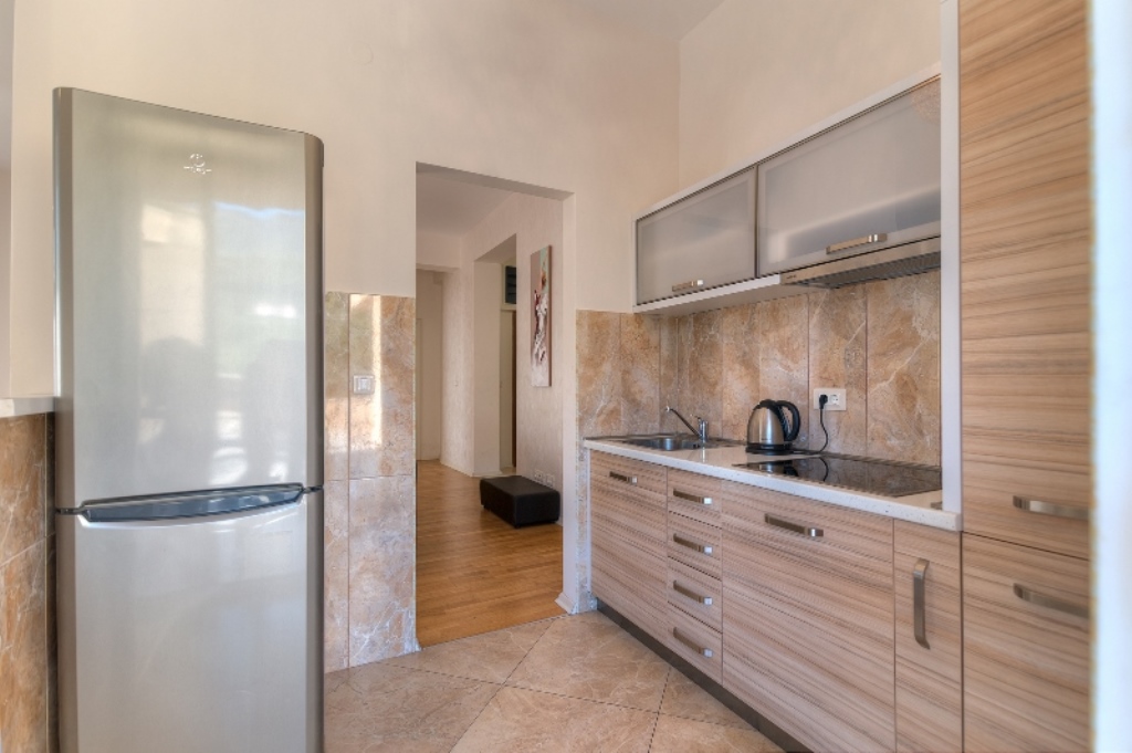 В АРР SV, 2 BR: Площа: 75-80 м2. Вітальня з диваном, спальня з французьким ліжком і спальня з двома роздільними ліжками, міні кухня (електроплита, чайник, холодильник), кондиціонер, інтернет Wi Fi, широкоформатний ТВ, санвузол з душовою кабіною, пральна машина, тераса з видом на море. Максимальне розміщення: 6 дор.