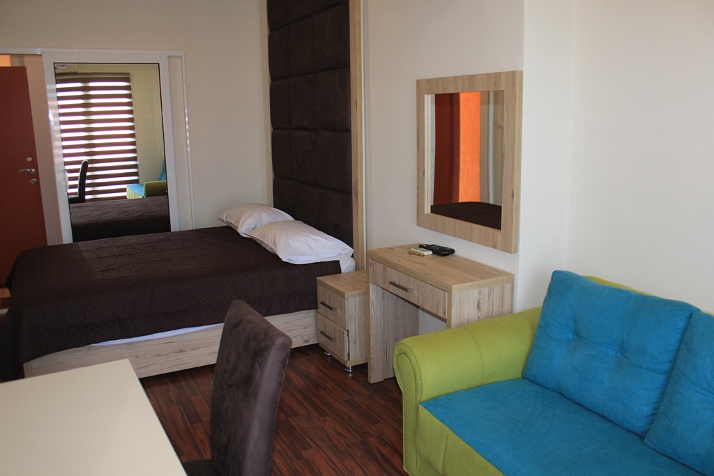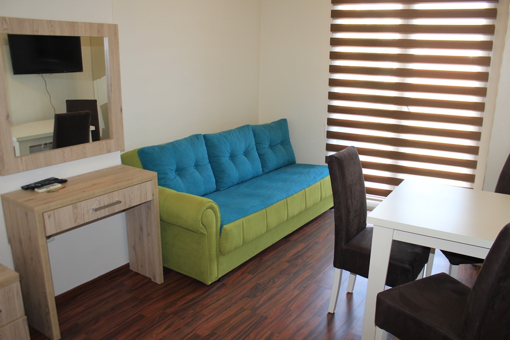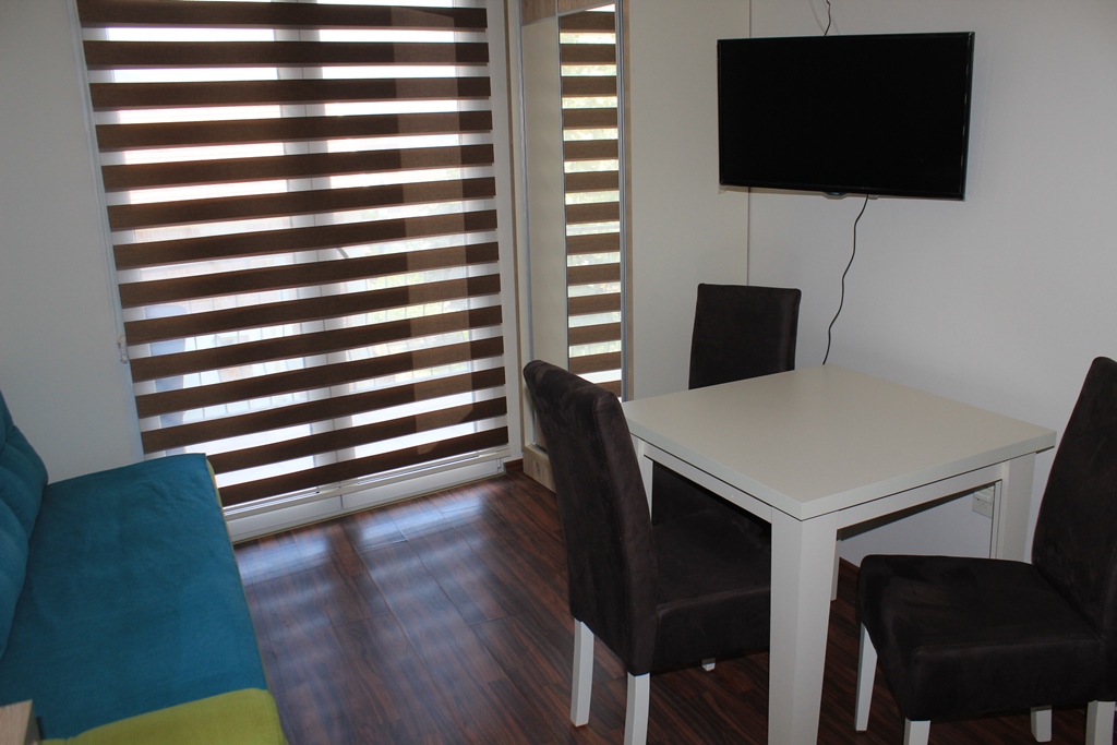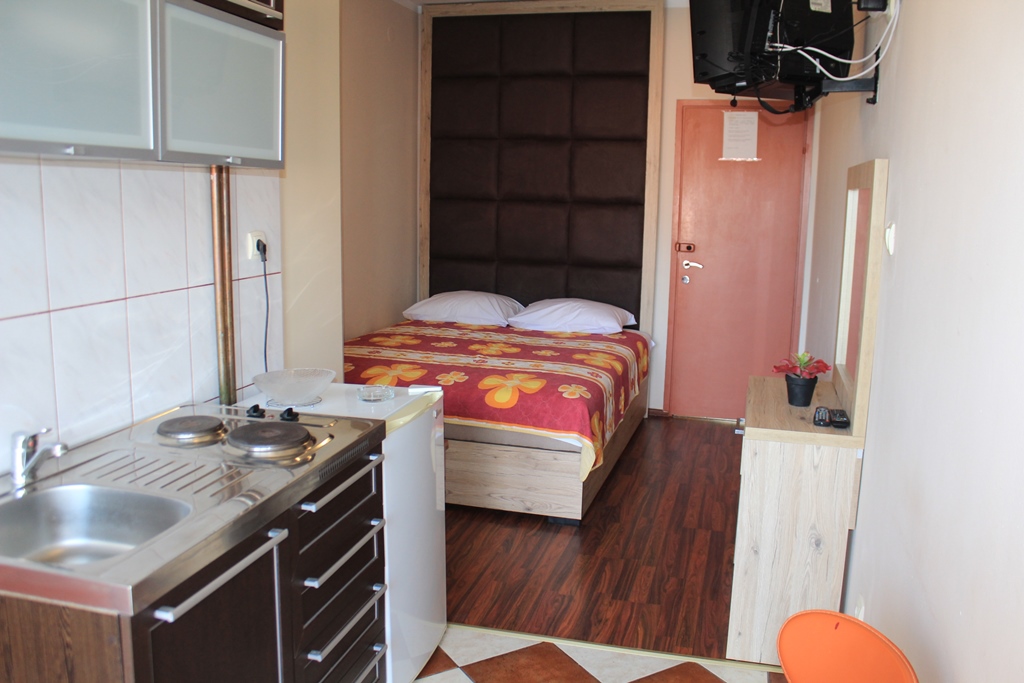 1 двомісний номер, 2 двомісних та 2 тримісних студіо з кухнею (можливе додаткове місце), 1 чотиримісний апартамент.