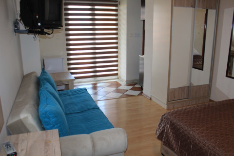 В STUD: Французьке ліжко та розкладний диван (в тримісному студіо), кондиціонер, кухонний блок з холодильником, електрочайник, балкон, кабельне телебачення, душ.