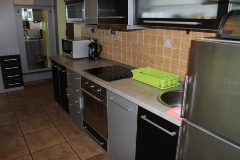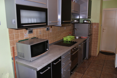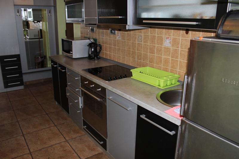 Кухня ідеально підходить для готування і оснащена всім необхідним - великим двокамерним холодильником, плитою з духовкою, мікрохвильовою піччю, чайником, посудомийній машиною, всім необхідним посудом.