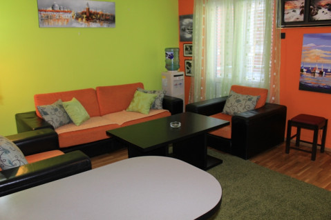 APP MLADAN 02 + 1: Двокімнатний номер з вітальнею, спальнею і повністю укомплектованою кухнею, кондиціонер в кожній кімнаті, 2 балкони з видом на подвір'я (вихід із спальні і з вітальні), 2 батареї на обігрів, інтернет.