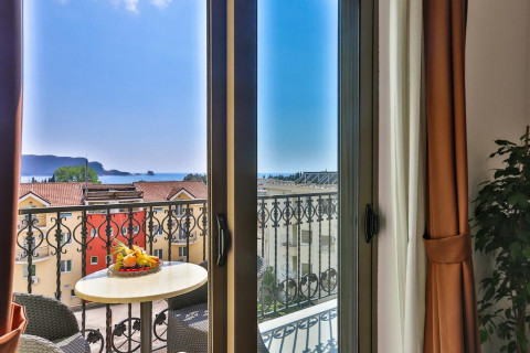 В STD DBL SV: французьке або окремі ліжка, софа, кондиціонер, супутникове ТБ, Wi Fi інтернет, сейф, міні бар, санвузол з душовою кабіною, фен, тапочки, французький балкон з видом на море. Максимальне розміщення: 3 дор. Площа 22 м2.