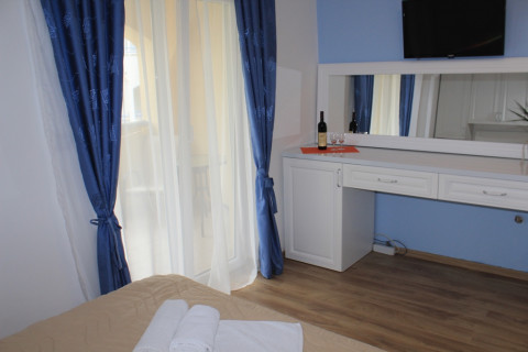 В DBL: двоспальне або роздільні ліжка, кондиціонер, холодильник, електрочайник, сейф, фен, балкон, душова кімната, кабельне телебачення.
