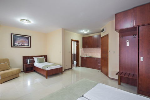 Studio 03 : 9 трехместных студио (от 28 м2), из них 6 номеров с возможностью дополнительного размещения - раскладывающееся кресло (40 м2), все с балконом, с видом на горы или сад. Максимально допустимое размещение - 3+1 человек.