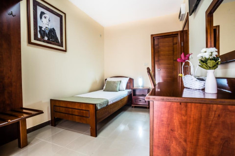 Одноместные номера: 4 одноместных номера , из них 2 с балконом (20 м2) и 2 без балкона (14 м2), с видом на горы или сад. Максимально допустимое размещение - 1 человек.