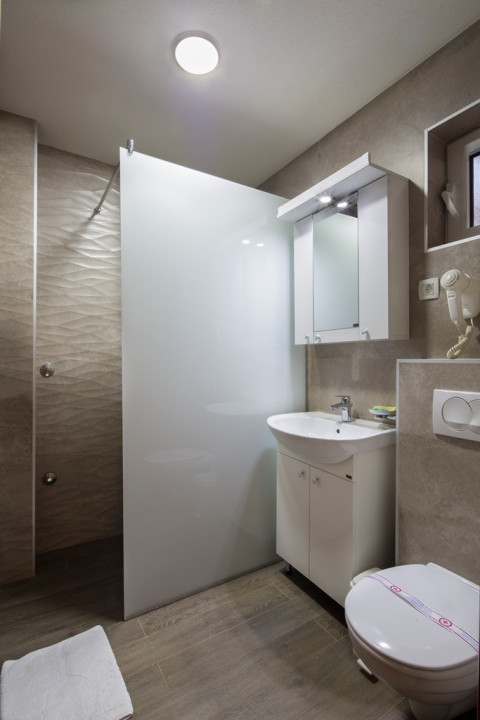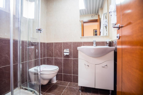Трехместные номера: 4 трехместных номера ,из них 3 с балконом (25 м2) и 1 без балкона (18,5 м2), с видом на горы или сад. Максимально допустимое размещение - 3 человека.