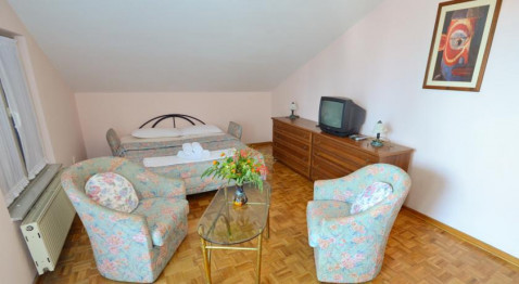 В АРР 04 LUX: номер знаходиться в новій частині будівлі, оформлений сучасно, французьке ліжко і дві софи, міні кухня, кондиціонер, супутникове ТБ, Wi Fi інтернет, санвузол з душовою кабіною, просторий балкон. Макс розміщення: 4 дор.